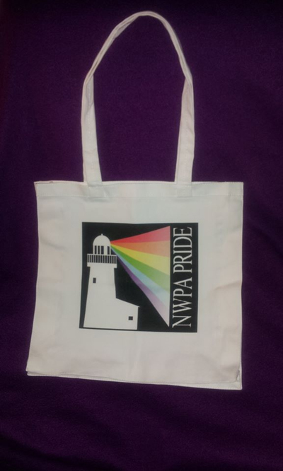 New this year are 26 oz. metal sports bottles with the NW PA Pride logo for keeping your beverage cool and fabulous, and also tote bags with the NW PA Pride logo in full color. Sports bottles are $15 each, and tote bags are $12 each.